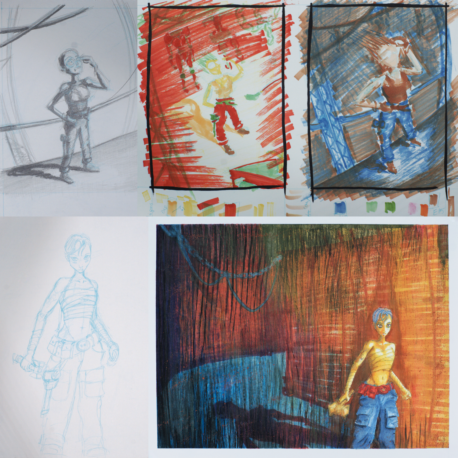 Comic ConceptComic Book Graphic Novel Covers and PanelsCharacter and world building creation.Cover concepts and sample panels.Hand drawn, inked, and colored. View fullsize ← ↑ → Ideation and Process Work